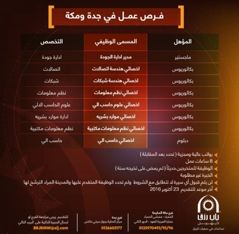 باب رزق جميل يعلن عن وظائف للشباب في مكة المكرمة و جدة مدونة وظائف الإلكترونية