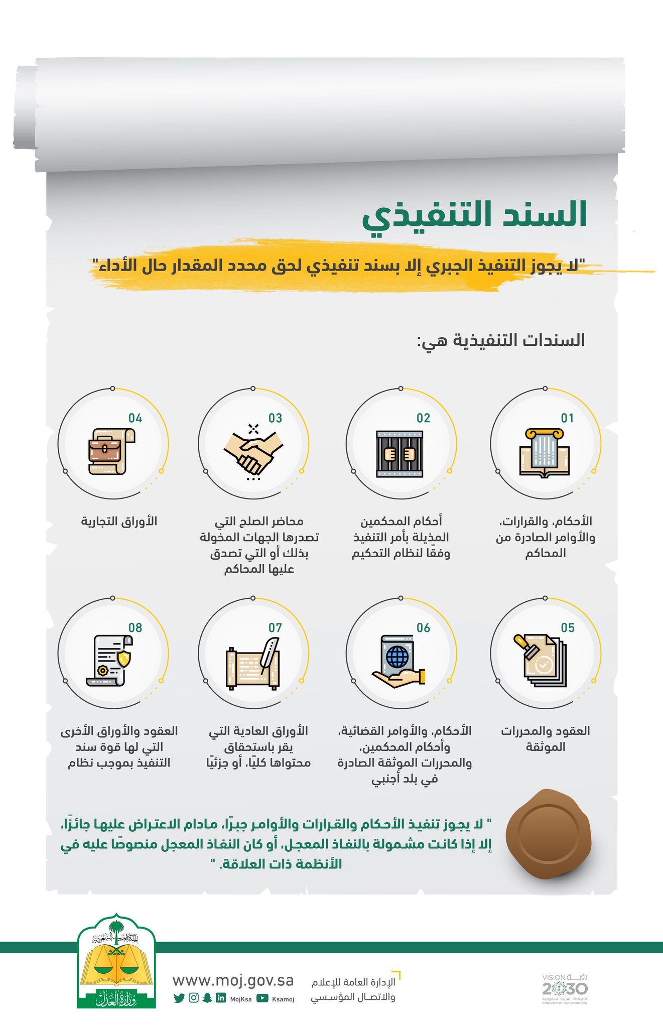 وزارة العدل בטוויטר لا يجوز التنفيذ الجبري إلا بسند تنفيذي لحق محدد المقدار حال الأداء